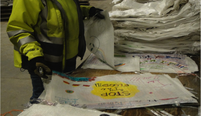 Instead of the typical burlap or mesh sandbag, Michael Strand, an associate professor and Ceramics Department head at North Dakota State University, created the Sandbag Art Project. Realising that many Fargo residents were unable to help with sandbagging – children, seniors and others who may not be able to endure the physical work of filling or slinging sandbags – Strand worked with the city to bring sandbags to these people so they could help by decorating them with encouraging notes and drawings. The response was wonderful. Volunteers filling sandbags were encouraged and entertained as they pulled out each sandbag with a different decoration.