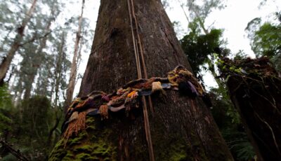 One year on from the June 2021 storm in the Yarra Ranges, artists Kerri Hollingsworth and Bronwyn Ward explore the loss of an estimated 25,000 trees by creating fibre sculptures to hold and protect memory. They have woven, latch hooked and wound natural fibres into tactile sculptures, incorporating works made with community members as part of Yarra Ranges Council’s Art Attack program.